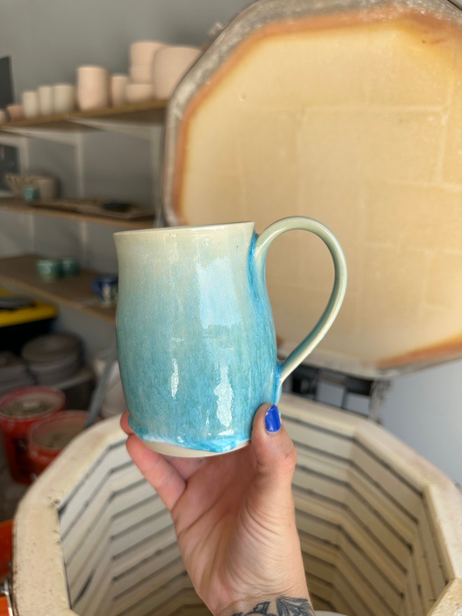 Wrap your hands around something made with love. This handmade ceramic cup is wheel-thrown in small batches and finished with a lead-free glaze- perfect for your daily coffee, tea, or cocoa ritual. Designed for comfort and made to last, each mug is a unique reflection of the slow, intentional process behind it.